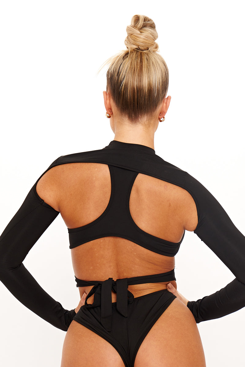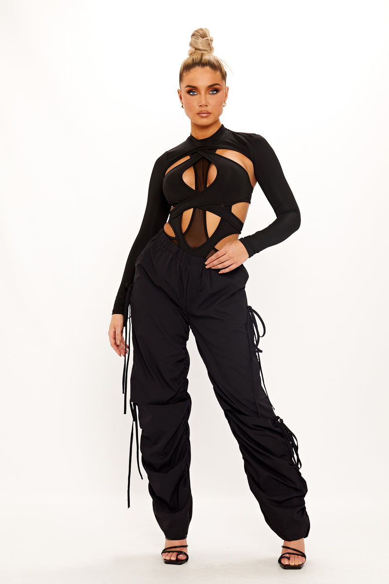 Black High Neck Cut Out Mesh Detail Long Sleeve Bodysuit
