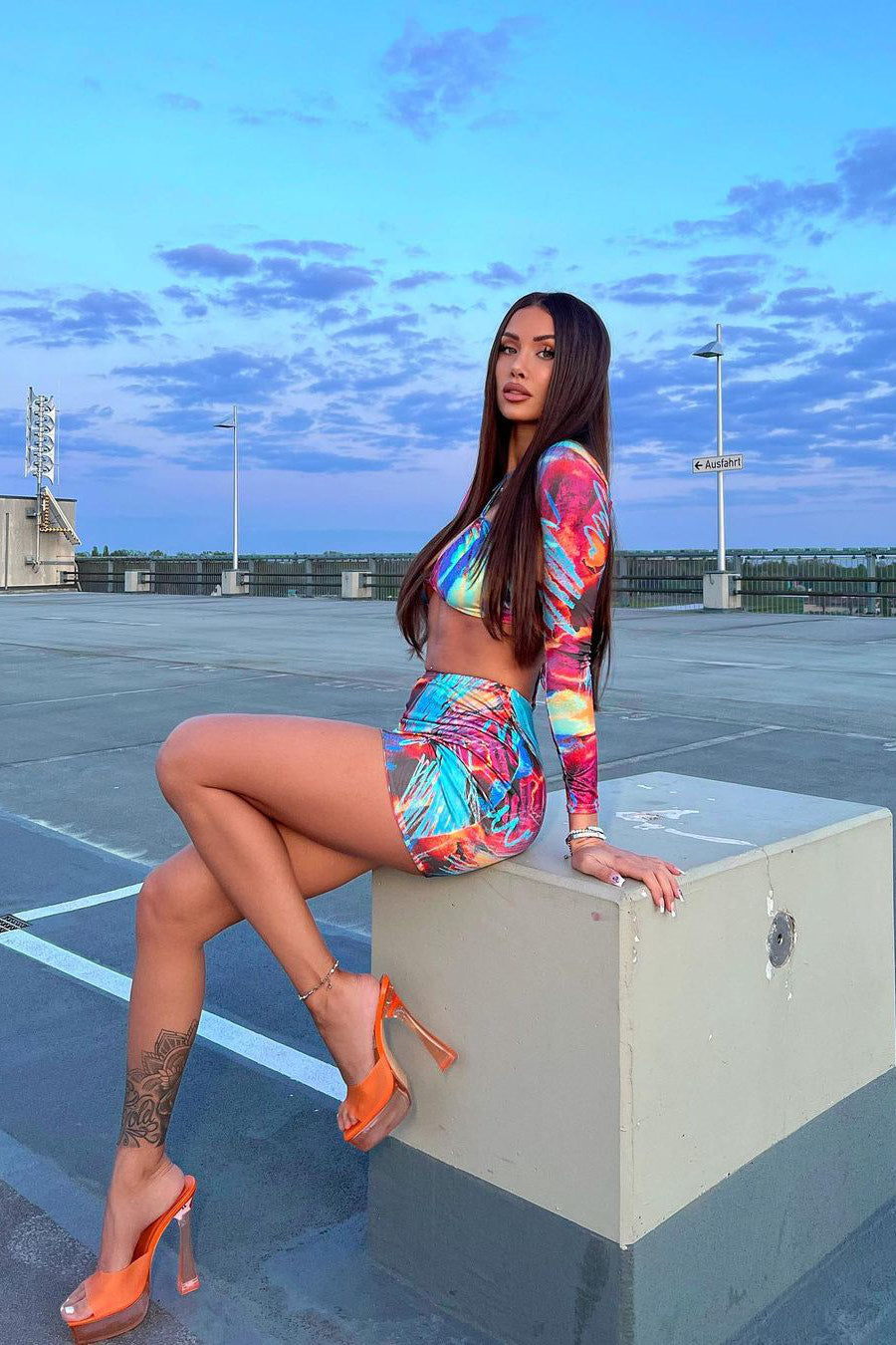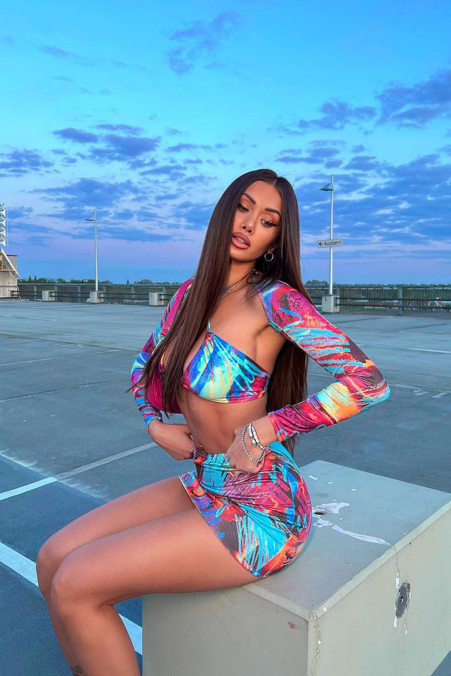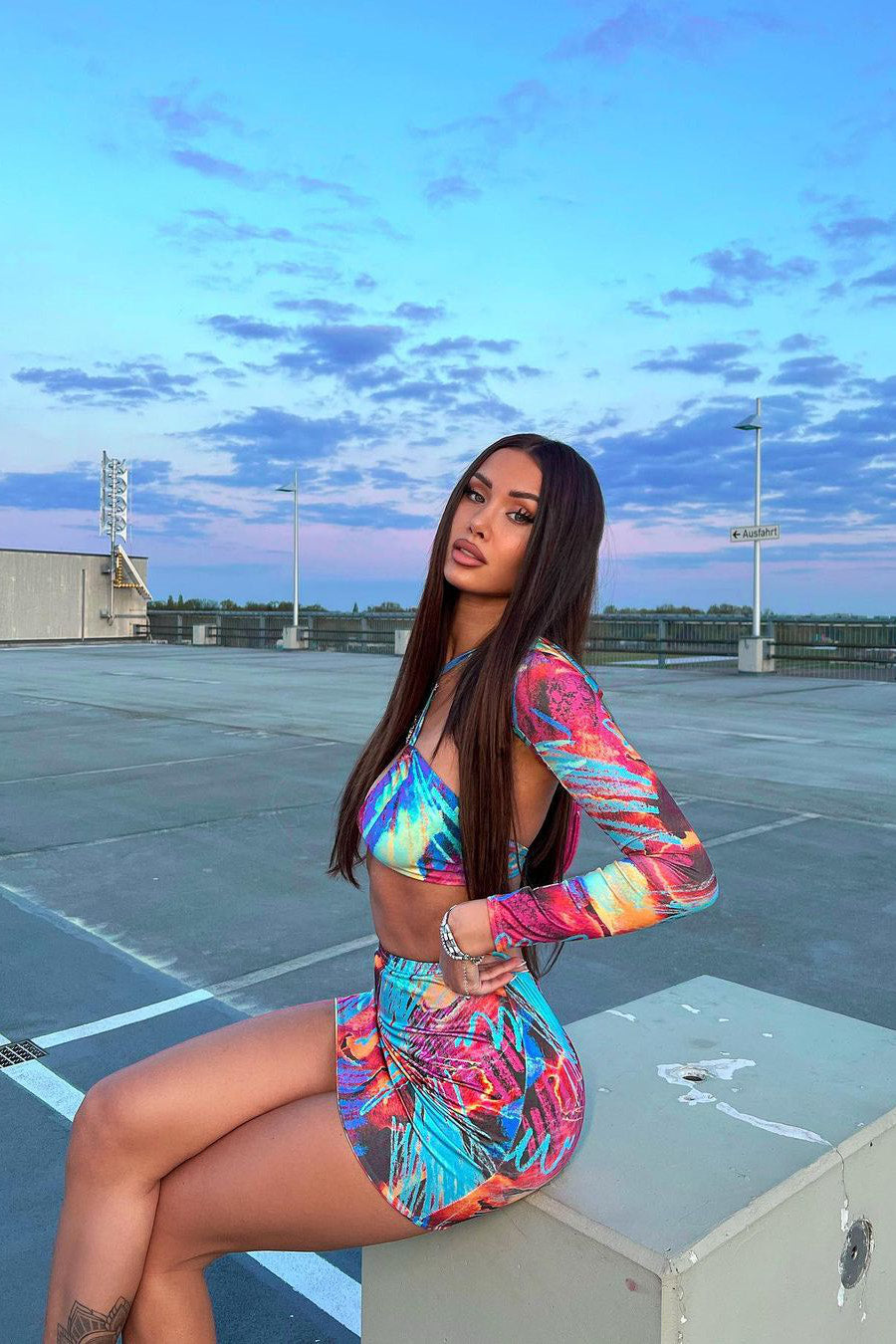 Multi Graffiti Print Halterneck Mini Skirt & Crop Top