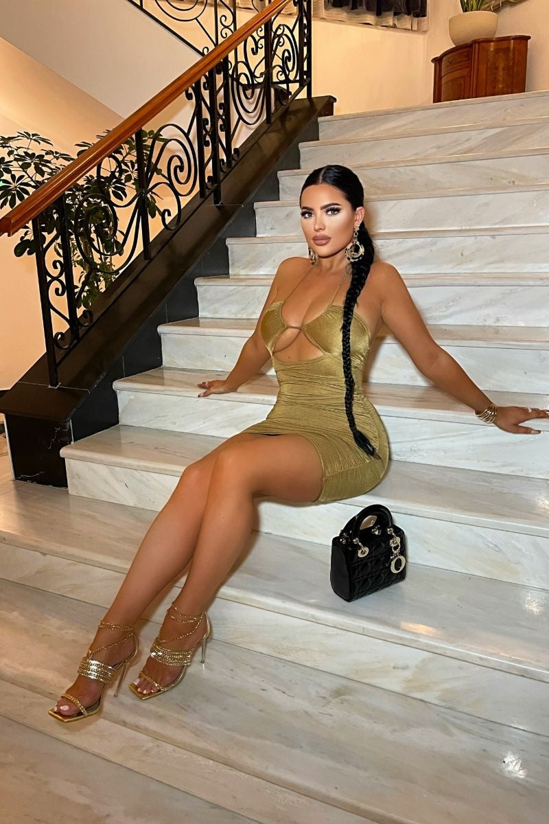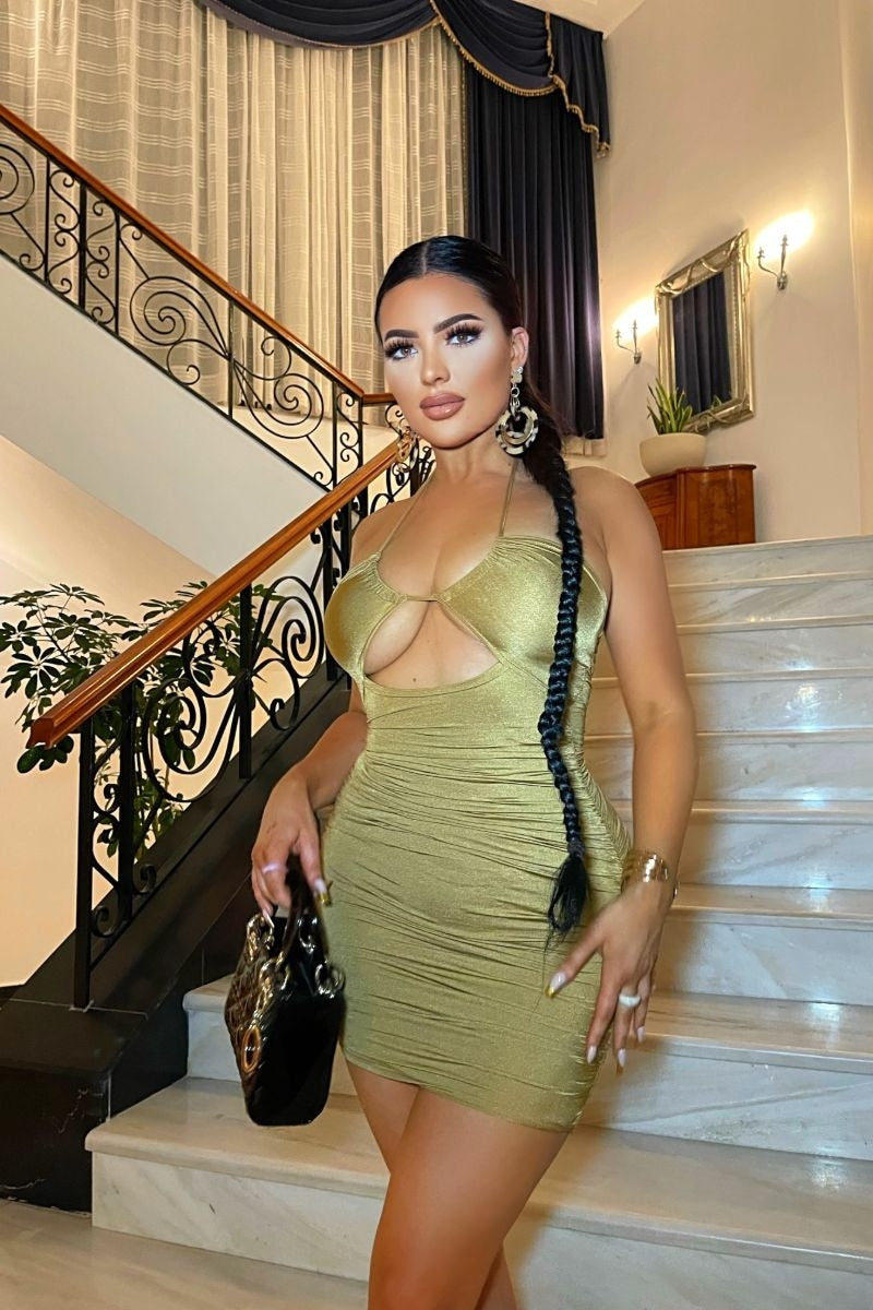 Olive Slinky Cross Strap Ruched Detail Mini Dress